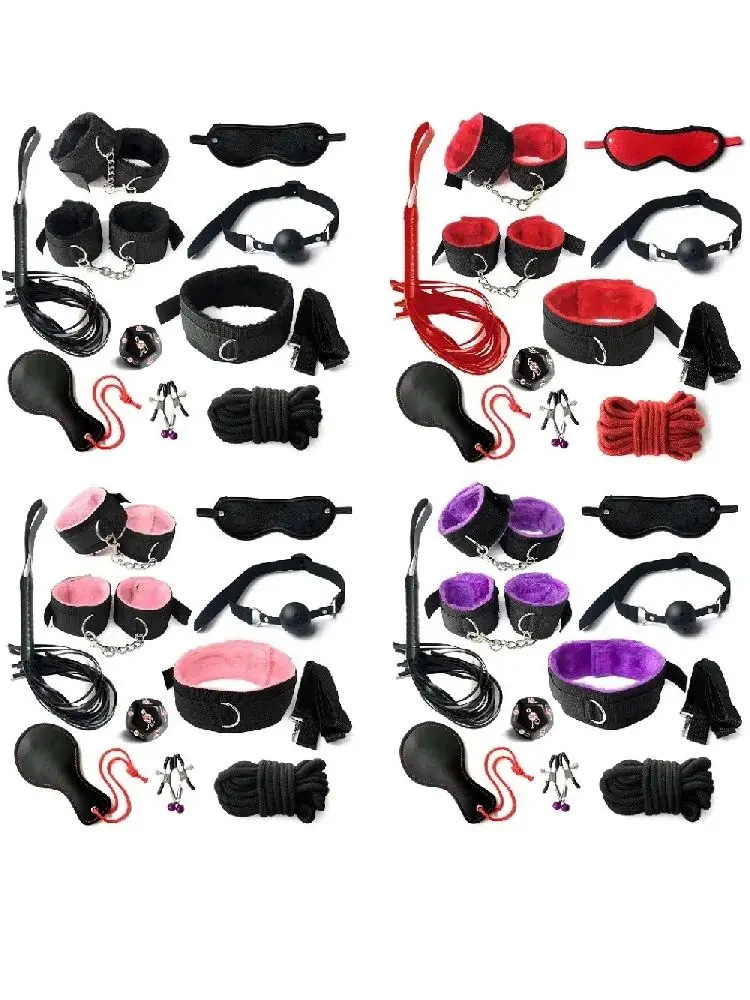 15 Piece SM Bondage Set Sexy Plush Handcuffs Whip Big Mouth Balls Teethers Nipple Clamps Couple Sex Toys Adult Bedding