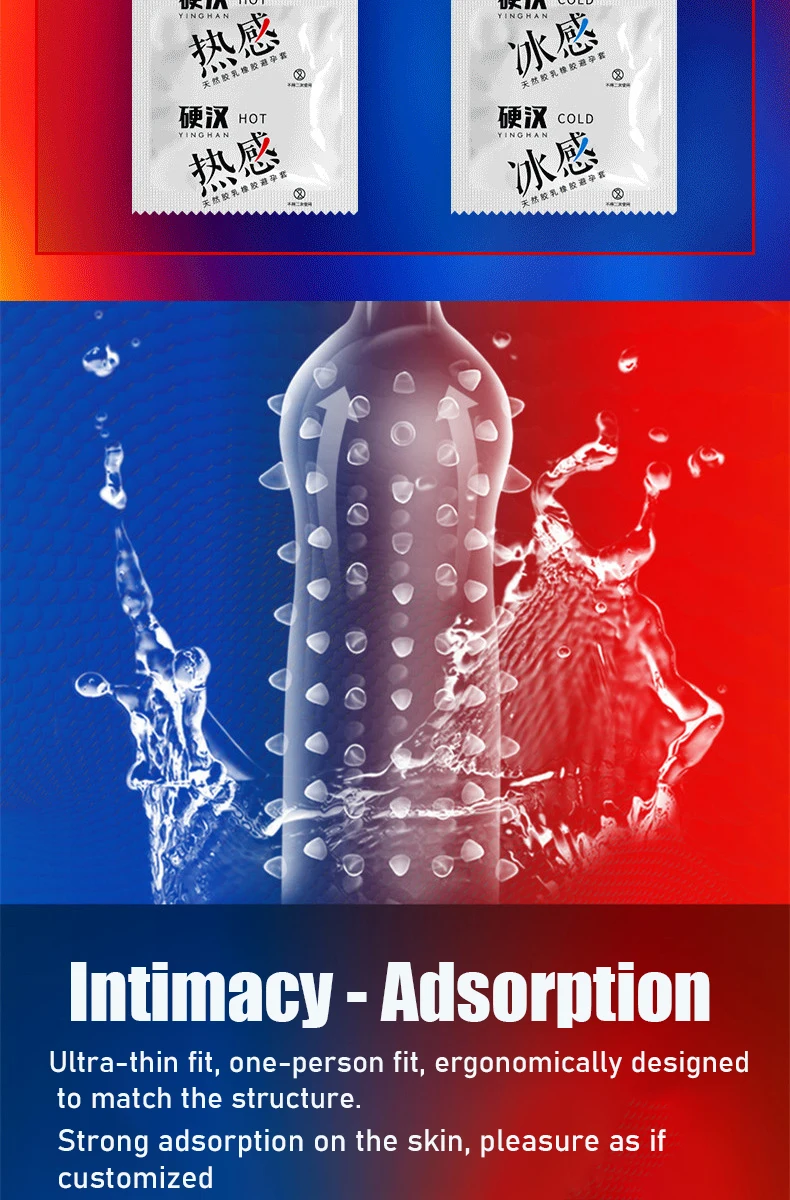 10Pcs Ice and Fire Particle Condom Delay for Men Lubrication Contraception Sensitive Penis Sleeve Adult Products Sex Toys