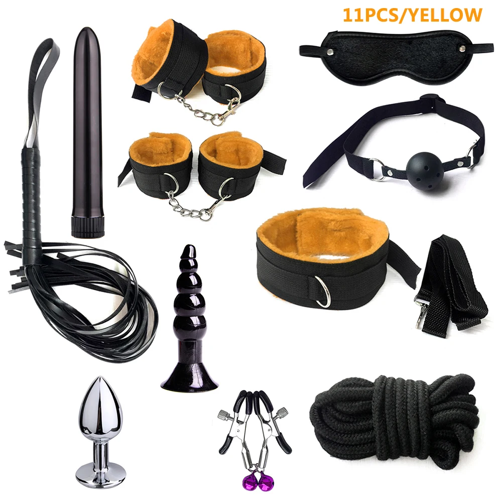 BDSM Kits Sex Bondage Set Handcuffs Gag Whip Nipple Clamps Erotic Sex Toys for Women Couples Adult Sex Shop Anal Butt Plug Tail