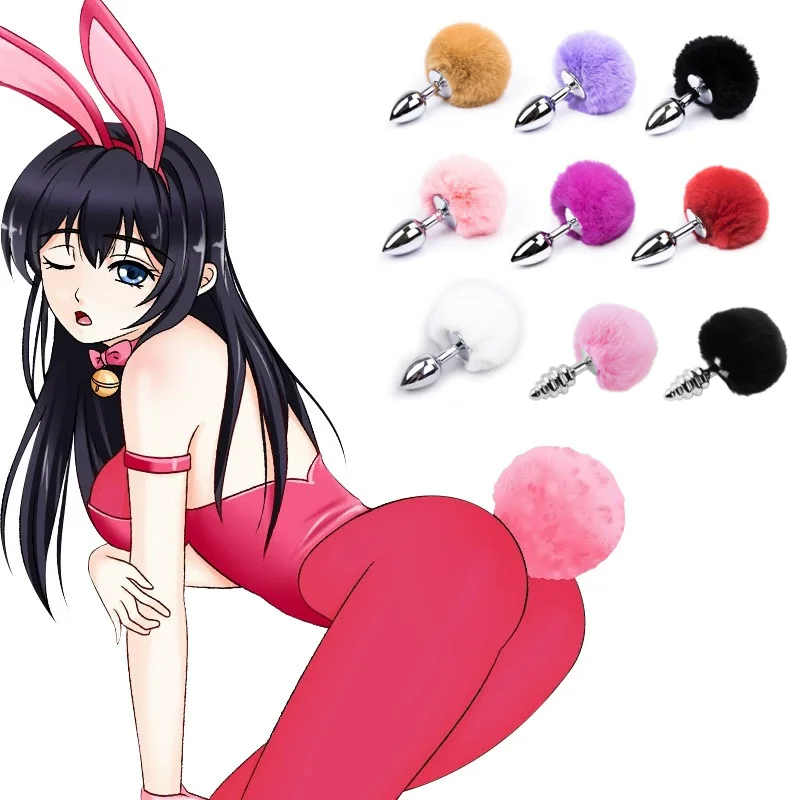 Cosplay Erotic Sex Toys for Women Adults Sex Game Metal Plush Rabbit Tail Anal Plug Prostate Massager Butt Plug Rabbit Ear BDSM