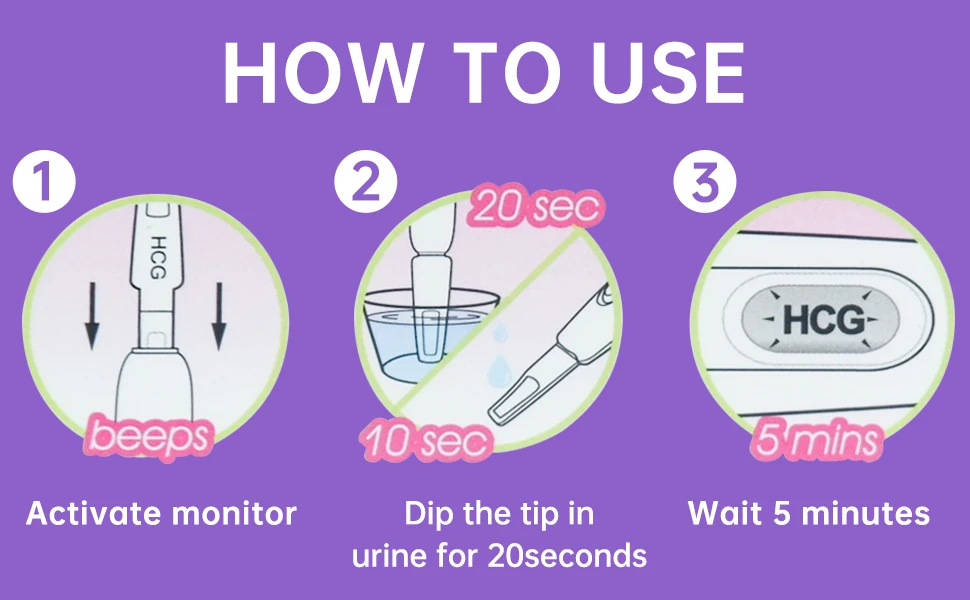 Tip:2. The content of hCG in urine will be lower than that in blood, so please take the blood test result as the standard.When to test with Zioxx digital pregnancy test