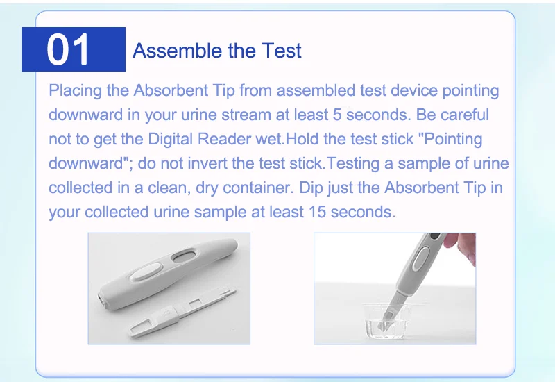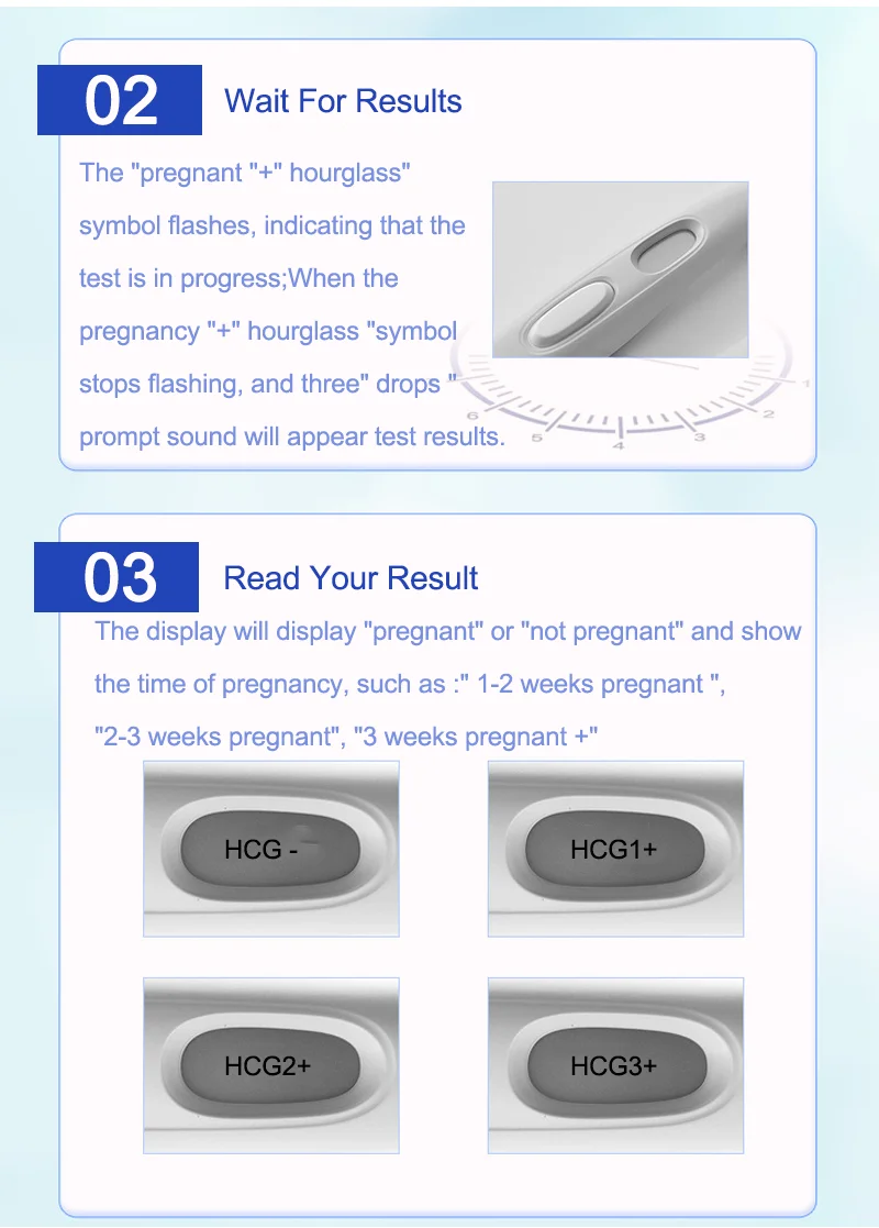 Tips: Before applying urine to the Pregnancy Test stick, it must be inserted into the test holder. When the test results come out, It will show a sound reminder.