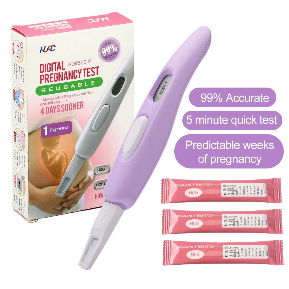 Package: One reusable digital early result pregnancy test +3 HCG strips