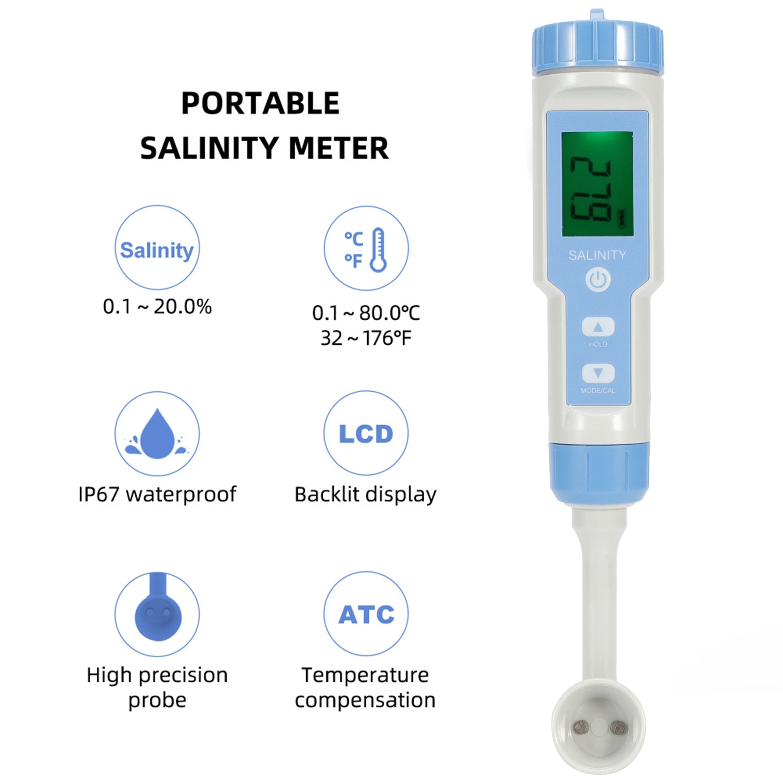 2. The salinity value can be accurately displayed. The salinity meter is small in size, light in weight, convenient to carry.
