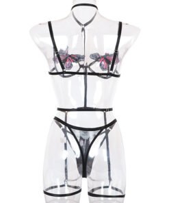 New style, Europe, America, Amazon hot sale sexy one-piece lace embroidery big butterfly three-point sexy lingerie