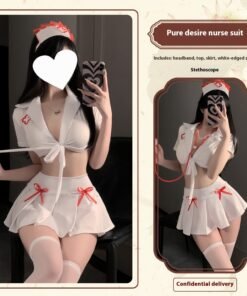 Kafa bandı + üst + kısa etek + beyaz kenarlı çorap + stetoskop / kafa bandı + üst + kısa etek + beyaz kenarlı çorap / kafa bandı + üst + kısa etek
