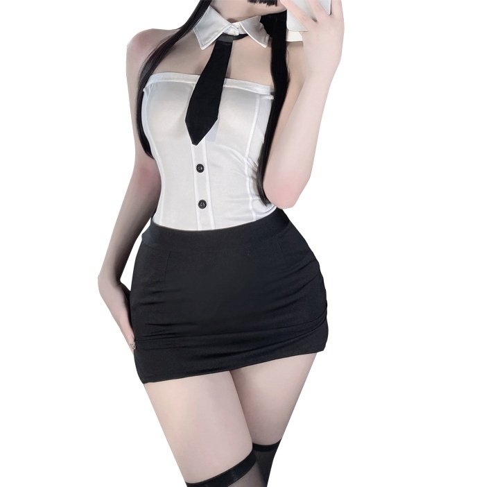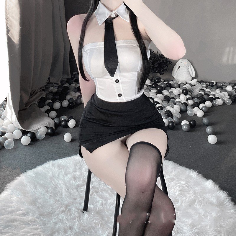 Beyaz ve Siyah etek 42 siyah: kravat + sekreter + T pantolon + kalça eteği + İpek çorap