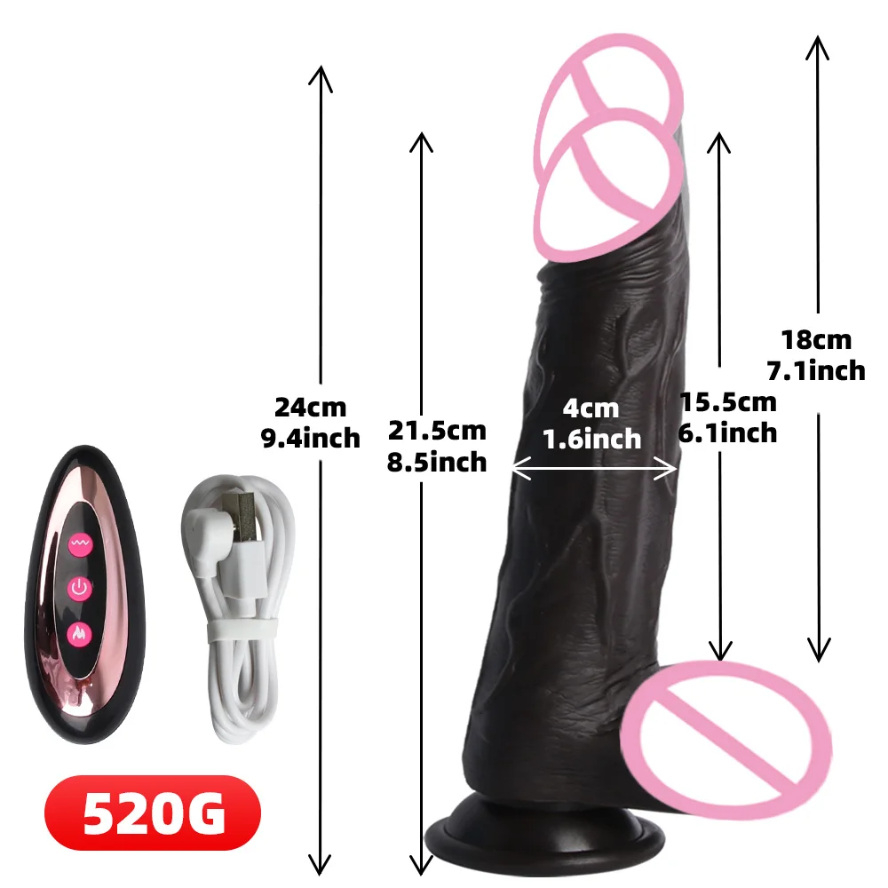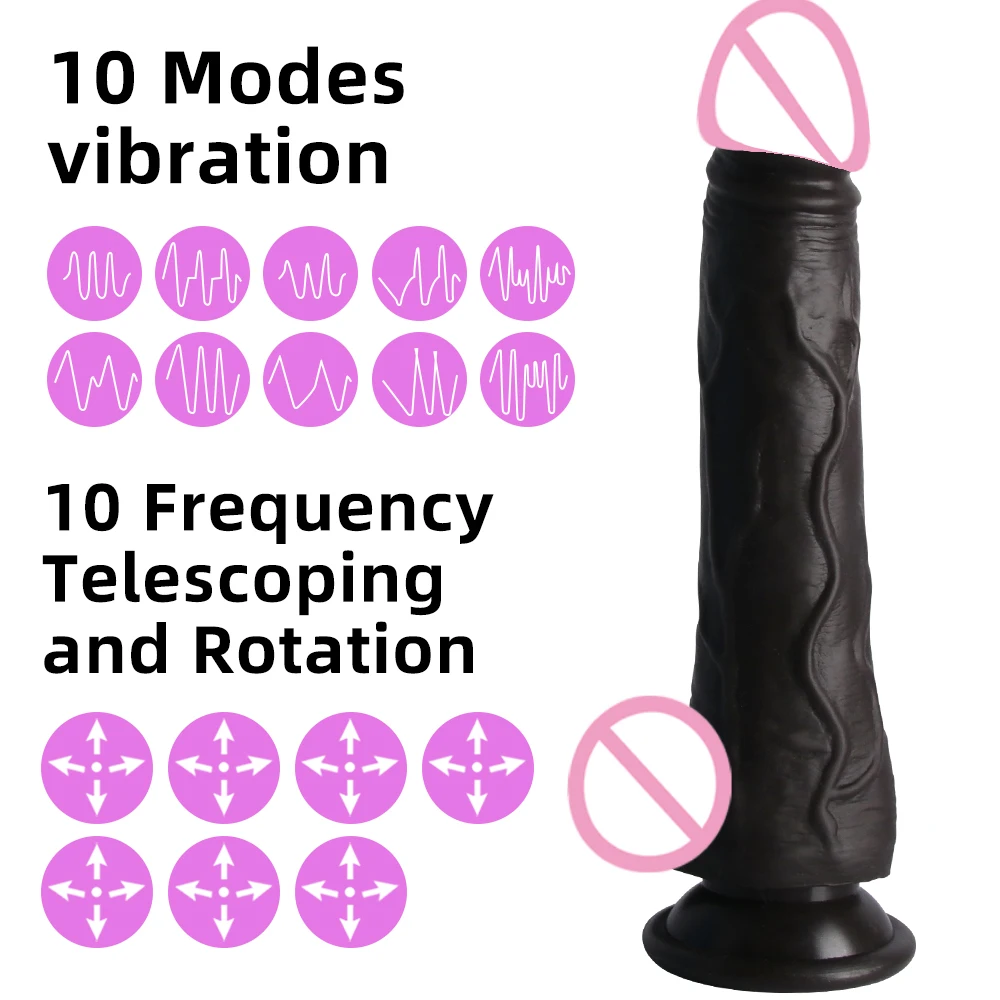 10.6in Long Realistic dildo Black vibrator penis telescopic Swing Heating silicone dildo remote control Dildo Vibrator for wome