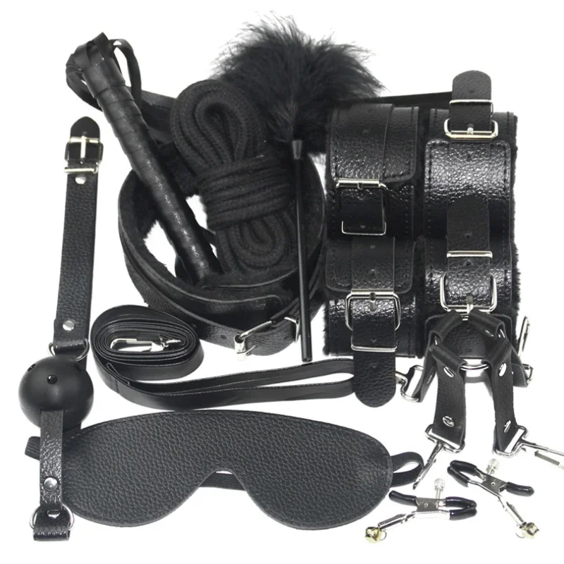 Sexy Leather BDSM Kits Handcuffs Nipple Clamps Whip Spanking Plush Sex Bondage Set Handcuffs Sex Games Sex Toys for Women Men