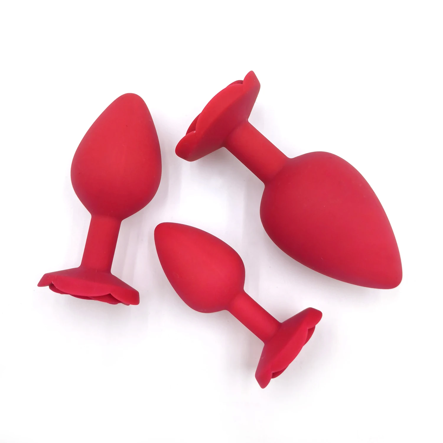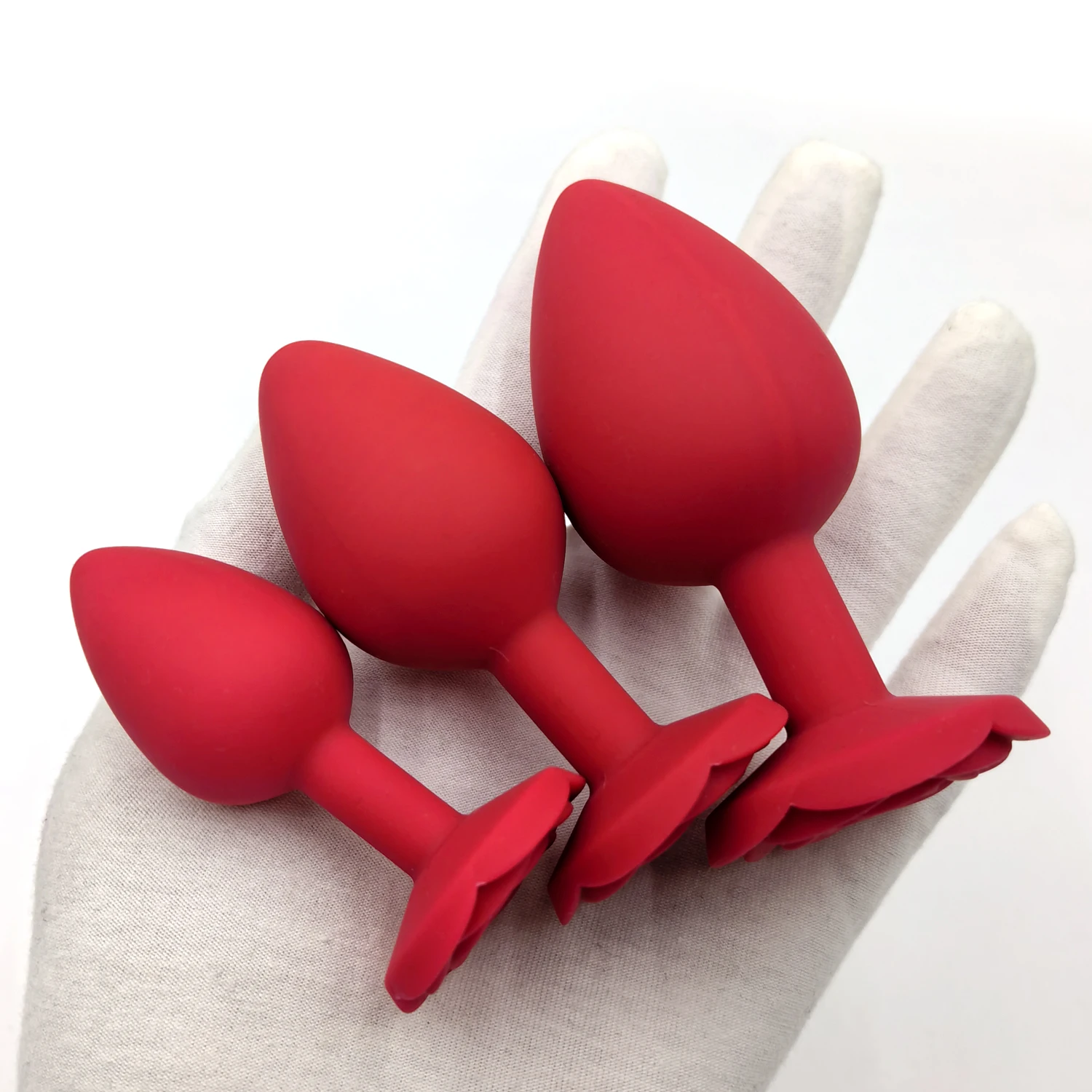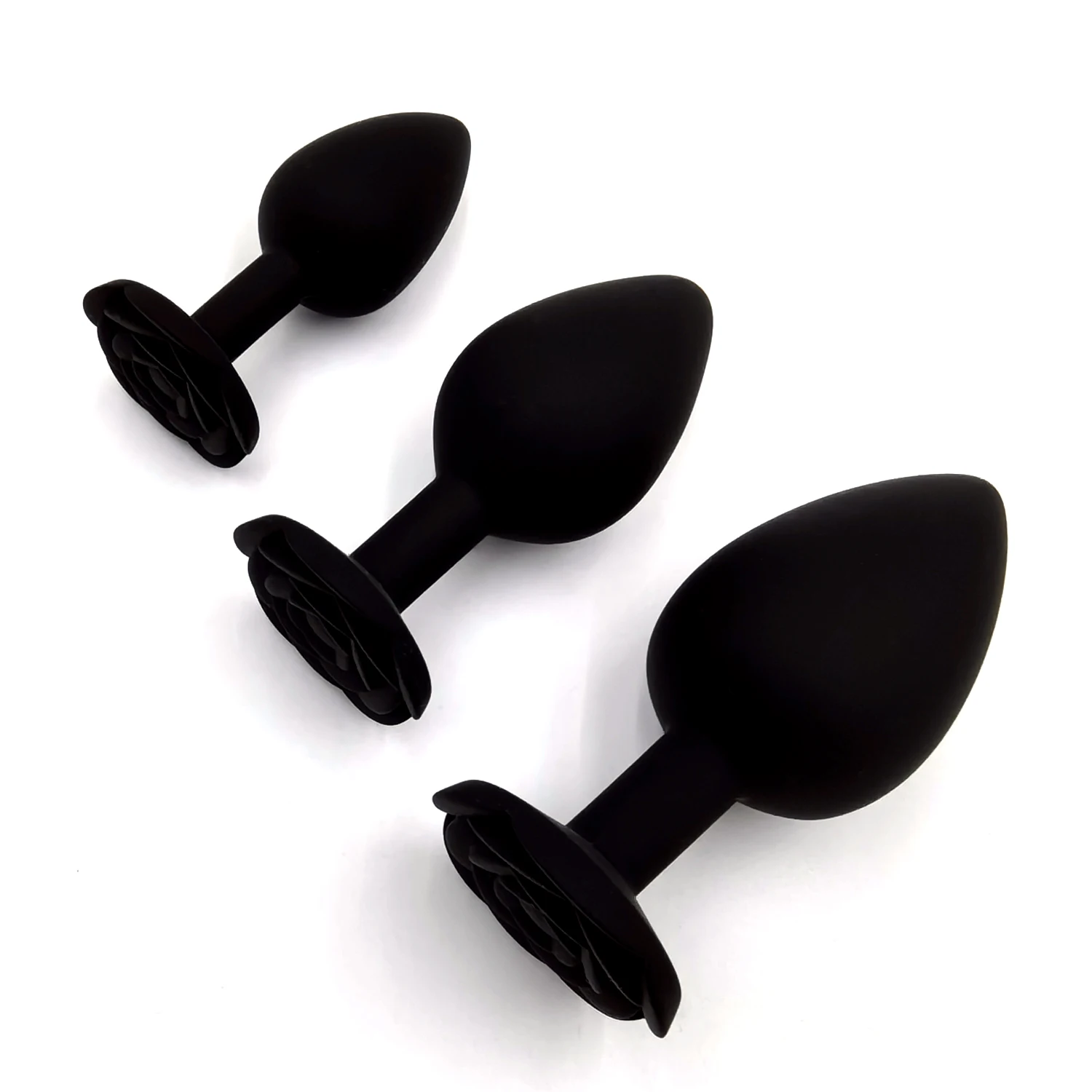 Soft Silicone Rose Flower Anal Plug Beginner To Expert 3 Sizes Butt Plug Anus Trainer Dildos Adule Sex Toys For Couple Women Men
