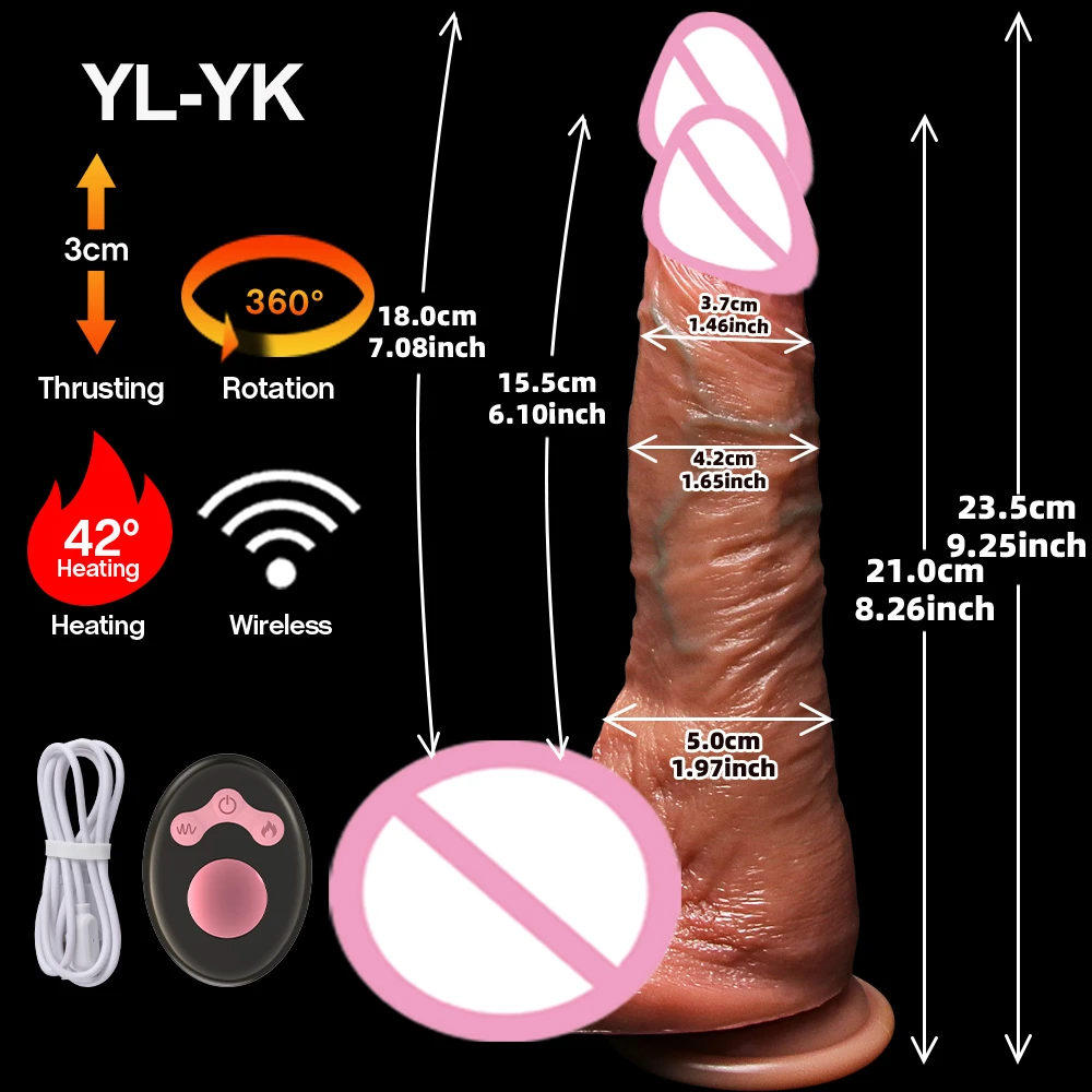 Realistic Thrusting Dildos Vibrator for Women-This G-spot dildo stimulator looks exactly like a real penis, with thrusting, vibrating, heating functions. The vivid glans of the dildo, the lifelike penis veins, the plump wrinkle ball, the thickly turned penis shaft, when you touch the dildo, experience the real touch stimulation, the strong stretching and vibrating stimulates the vaginal g-spot, and the warm heating design feels like real skin temperature.