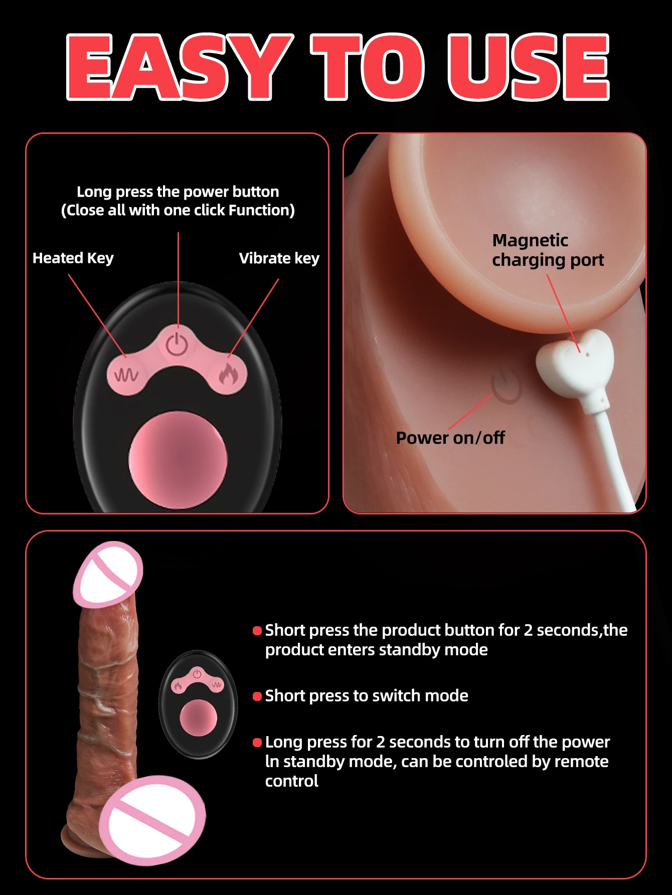 Multiple Stimulation Modes Choosing for Adults-This heating dildo has 10 thrusting modes and 3 speed options, from gentle to wild, from the meat feel intense, please choose the mode that suits you, experience the mindblow stimulation. perfect sex toy.
