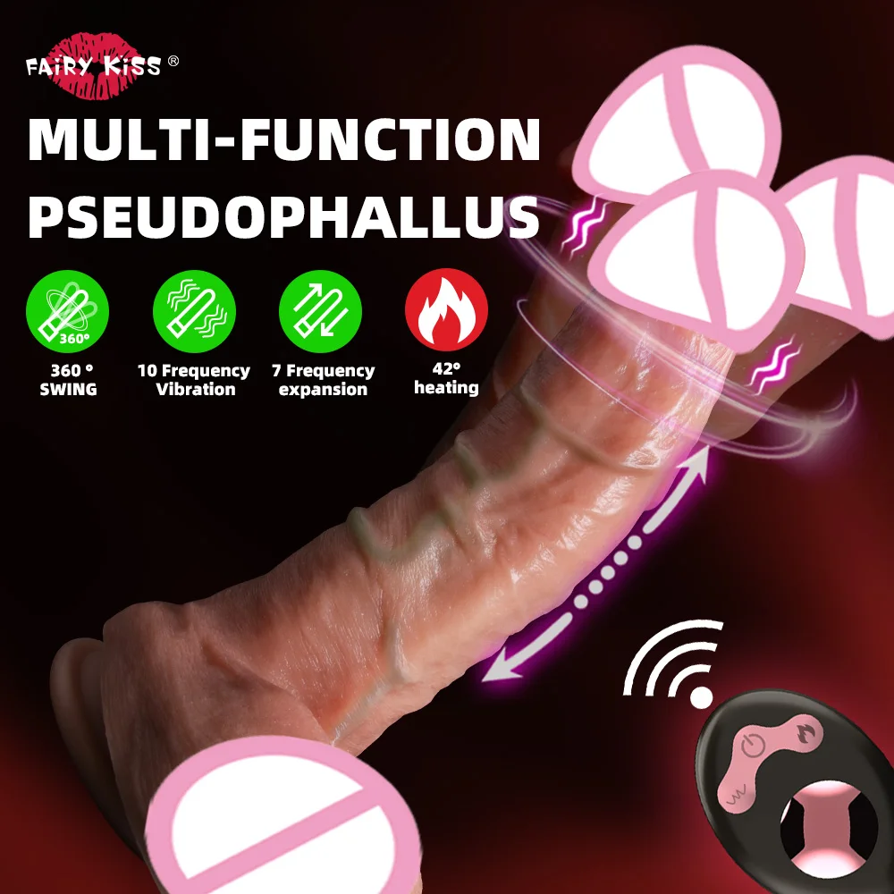 Vibrator dildo xxl realistic big cock telescopic heated spinning penis expansion vibratory massager female couple sex toys 18