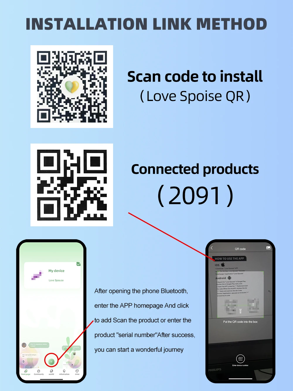 2 . Click ” + ” on App to scan CD16 QR or add product code 2091 to connect the vibrator to the App.