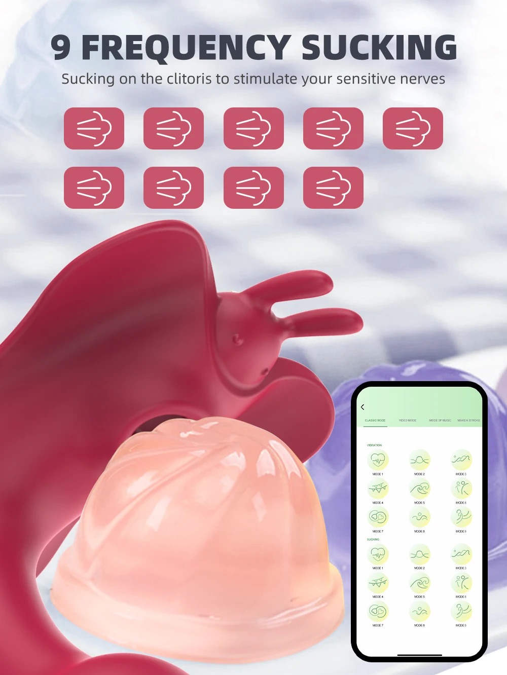10 Powerful Stimulations & Remote Control This wearable vibrator has 10 kinds of sucking & vibrating modes for different intensities of sexual stimulation. With the remote, you can control it easier.