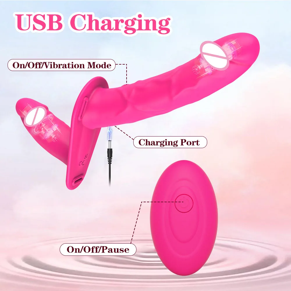 Wearable Double Vibrators Penetration G-Spot Strap On Dildo Panties for Lesbian Vagina Massager Couples Sex Toys Adult Products