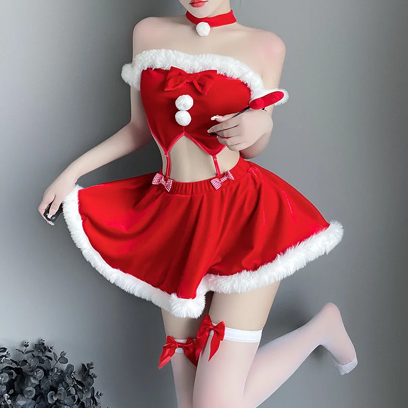 Women Christmas Santa Claus Cosplay Costume Sexy Lingerie Mini Skirt Outfits Erotic Maid Uniform Anime Roleplay Sex Porn Clothes